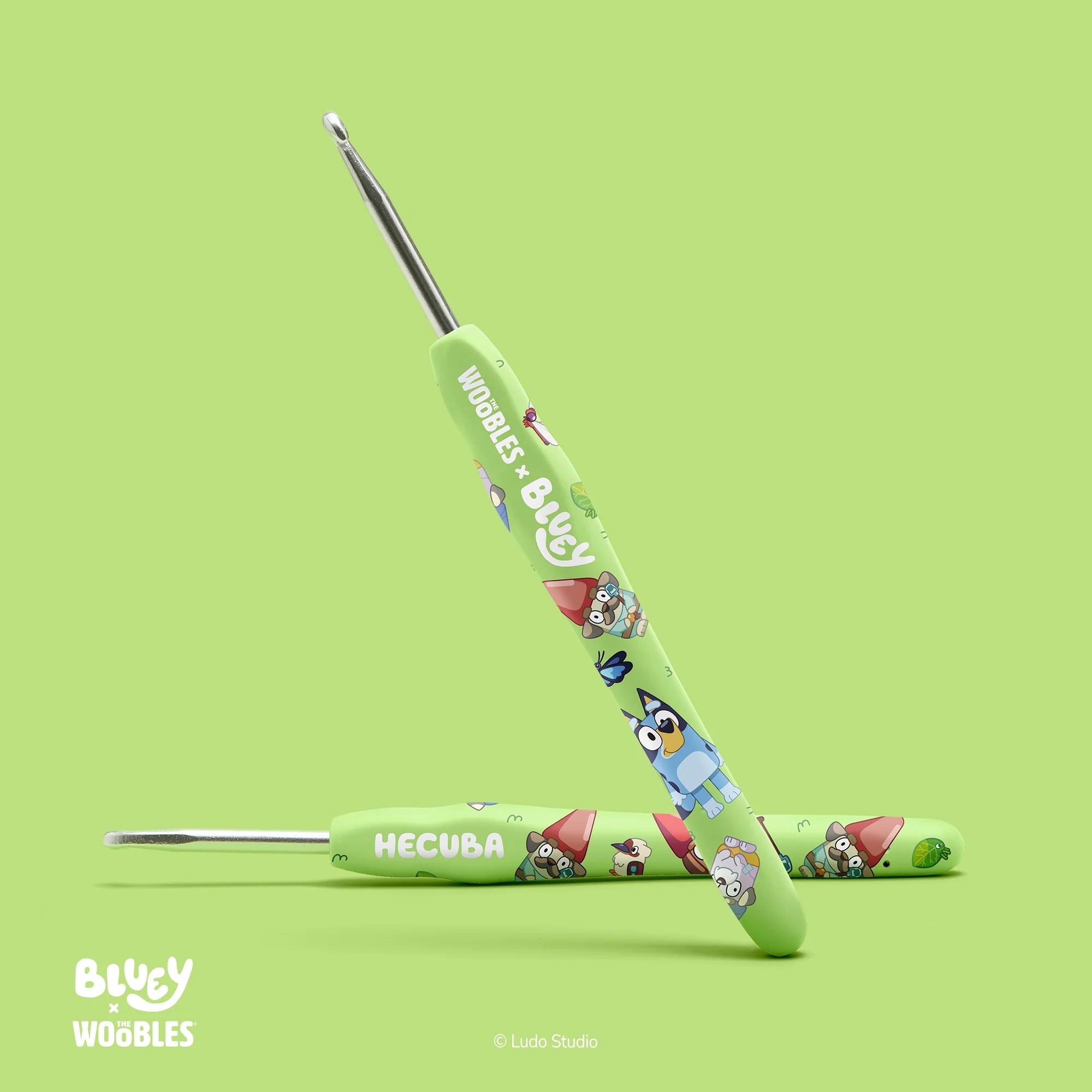 You’ll get Bluey and her Keepy Uppy Balloon, Bingo and Bob Bilby, Chattermax and his ChatterSnax, and Hecuba the Gnome and Hecuba’s Shovel. But the fun doesn’t stop there, as this special holiday collection also comes with a cute lil’ Christmas Cracker and a jolly ol’ Veranda Santa Hat! It’s truly more than enough to keep anyone merry and bright. So grab one of your four Blue-mazing custom hooks, gather up all your Easy Peasy Yarn™, and turn on our simple step-by-step videos, ’cause Veranda Santa Is Coming to Town!